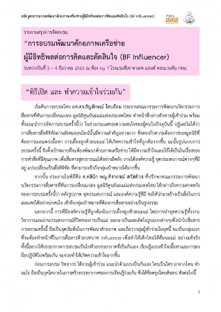 รายงานสรุปการจัดอบรม: “การอบรมพัฒนาศักยภาพเครือข่าย ผู้มีอิทธิพลต่อการคิดและตัดสินใจ (BF Influencer) ระหว่างวันที่ 3 – 4 ธันวาคม 2565 ณ ห้อง Ivy 7 โรงแรมทีเค พาเลซ แอนด์ คอนเวนชัน กทม.